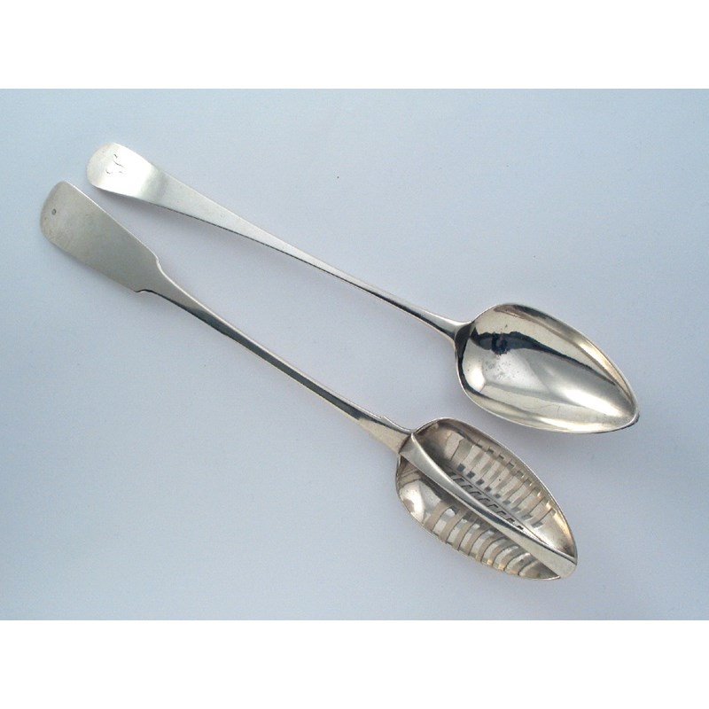 A George III Scottish serving spoon , Old English pattern, initialled, maker's mark R.W. (possibly for Robert Wilson) Edinburgh 1798, 12in (30.5cm), 3.5oz.
