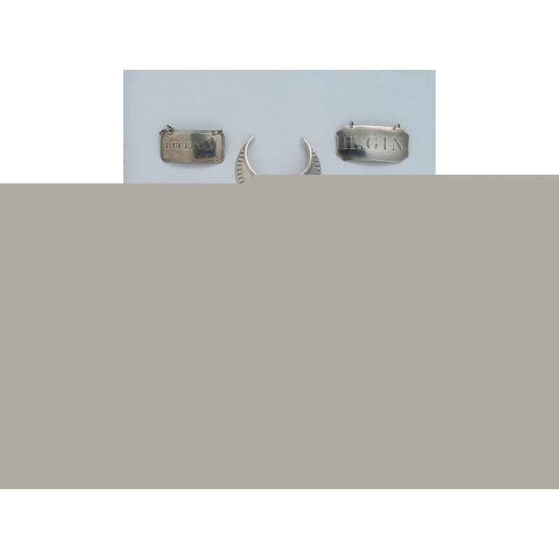 A scarce early Victorian Anti-Corn Law League* wine label , stamped out with sheaves of wheat, a conucopia of fruit, a scythe, rake, sickle and a bale of wool and the word FREE on each side, the scroll title area pierced "PORT", unmarked, c.1840, 2.25in (5.8cm) wide.