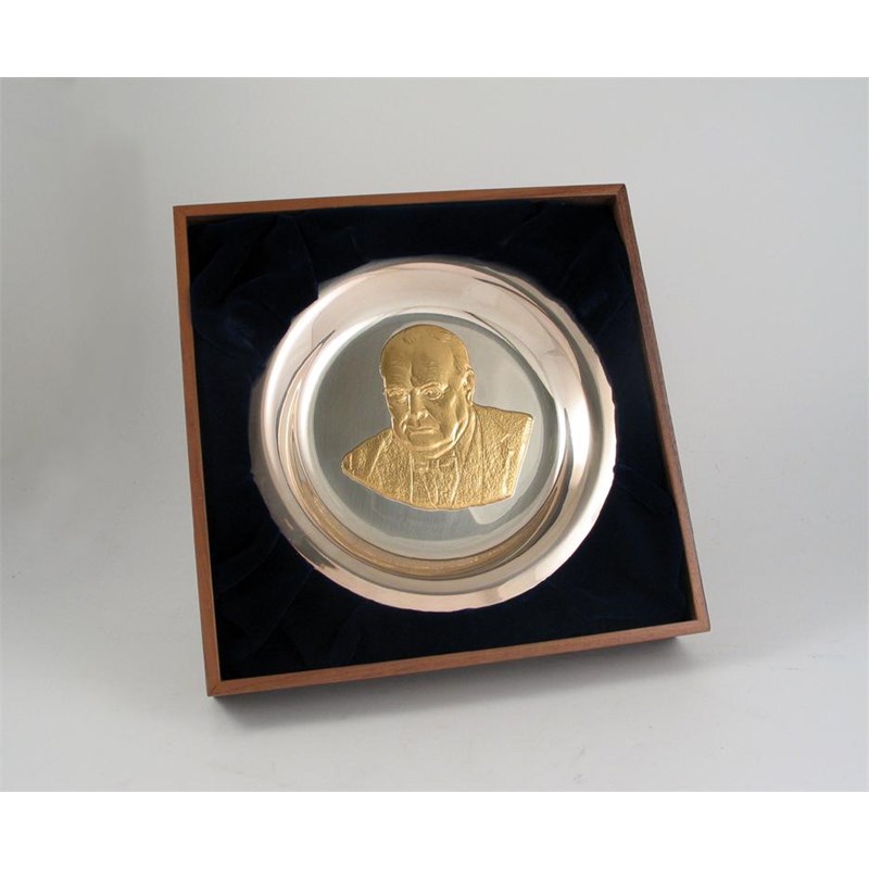 A modern Limited Edition "Churchill Centenary Trust Plate", with a portrait of Sir Winston Churchill in relief in the centre (complete with box and certificate), by John Pinches, London 1974, 8in (20.5cm) diameter.