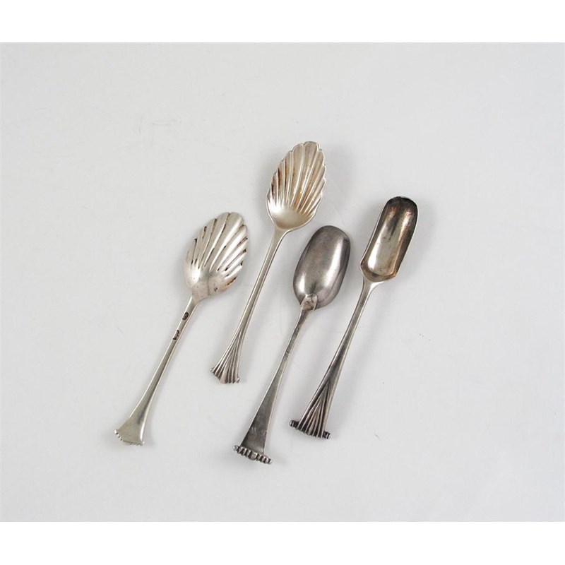Onslow pattern: a set of four George III teaspoons, another set of seven in a different varient of the pattern and three modern teaspoons to match, 5.5oz. (14)