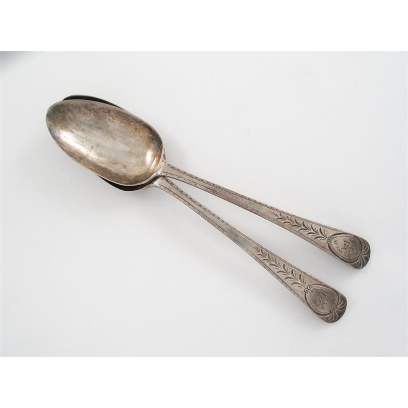 A pair of George III bright cut table spoons