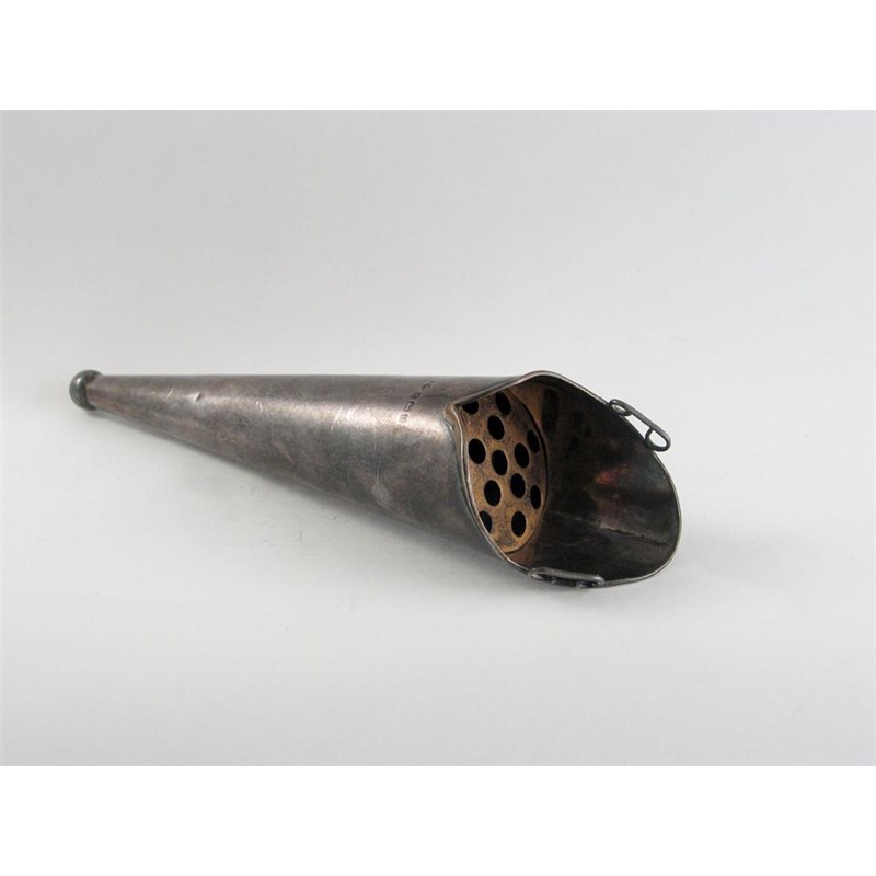 A modern conical posy holder with a shaped rim, ball-shaped terminal and a gilt metal interior to accept the flower stems, by Harrison & Hipwood, Birmingham 1912, 6in (15cm) high.