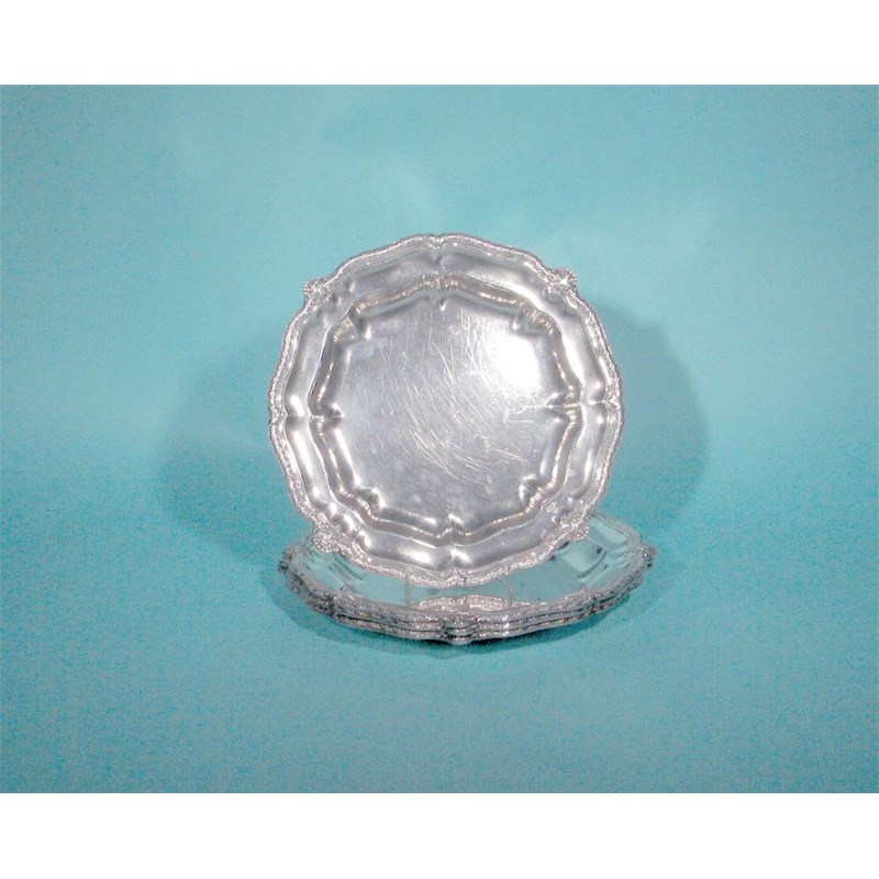 A matched set of four William IV/Victorian dishes, of shaped circular outline with cast borders of repeating floral motifs, crested, by Robert Garrard (three 1839 and one 1830), 11.25in (28.5cm) diameter, 110oz. (4)