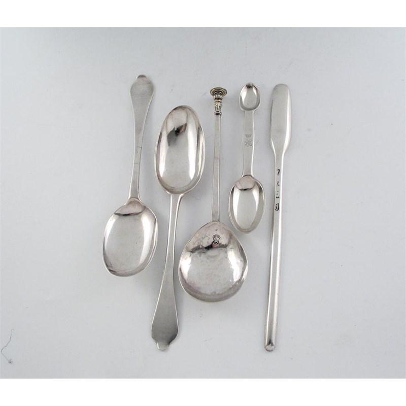 A Victorian medicine spoon, of conventional form with an engraved coronet and cypher in the centre, by George Adams, London 1874, 5.45in (13.8cm) long, 1oz.