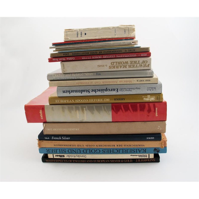 Foreign silver, a collection of volumes including: 18 general reference books and pamphlets on European silver; Emery, J., European Spoons before 1700; Poincons D'Argent by Tardy; Merken van Amsterdamsche Goud-en Zilversmeden, together with Quebec and Related Silver by R.A.C.Fox. (22)