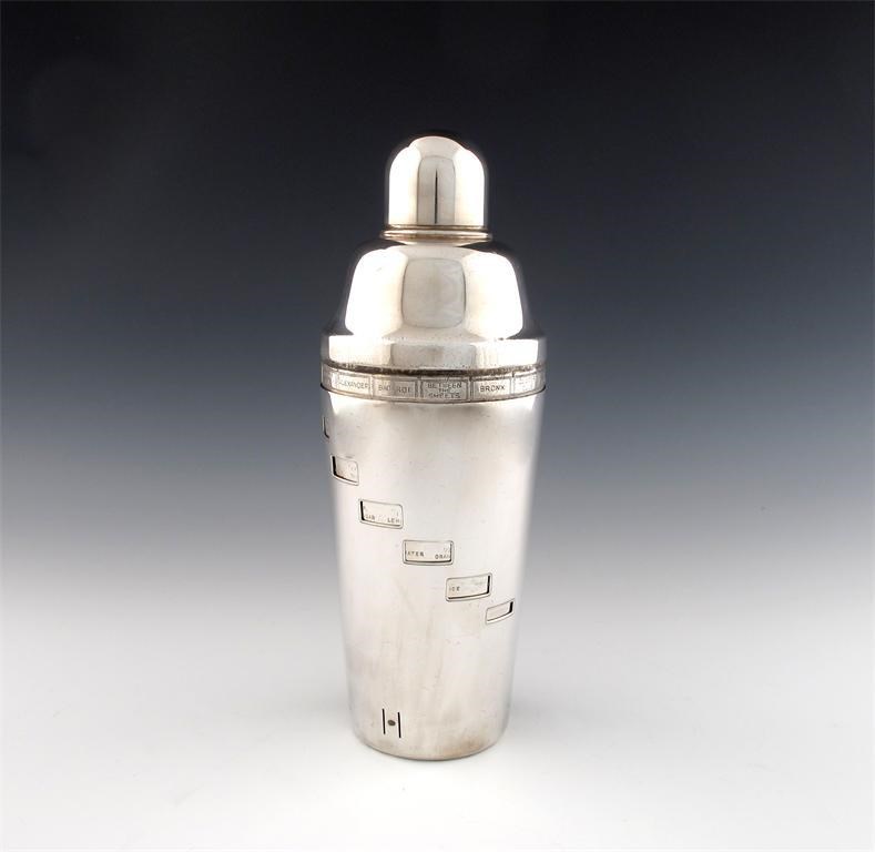 By Asprey, London, an electroplated recipe cocktail shaker,