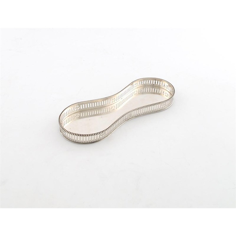 shaped oval form, with a gallery pierced with vertical slats, beaded border, length 19.7cm, approx. weight 3.5cm.