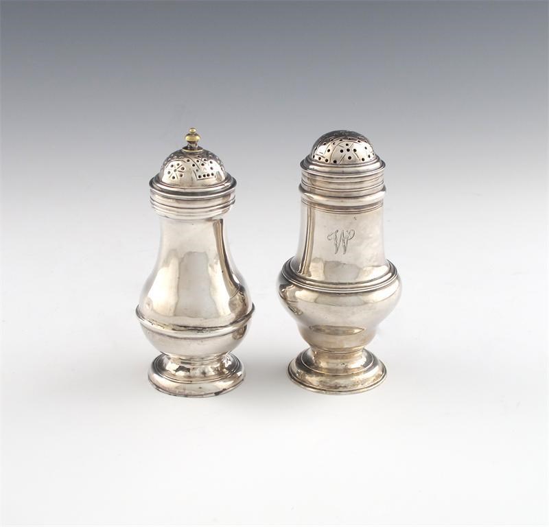 bun form, later brass finial, plus a George III silver bun pepper pot, approx. weight 4oz. (2)