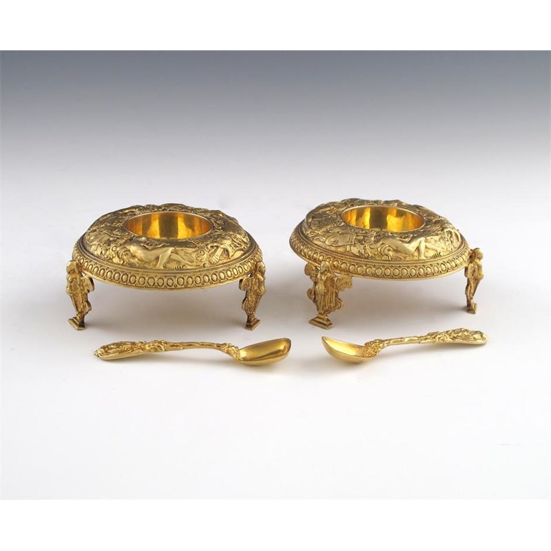 A pair of Victorian silver-gilt salt cellars and spoons,