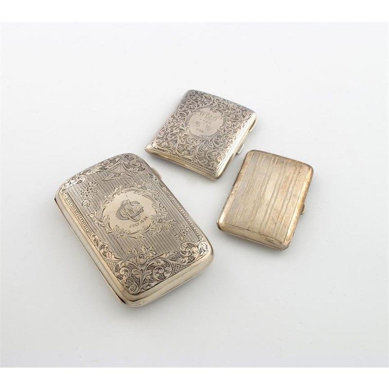comprising: an Edwardian cigar case, engraved foliate scroll decoration, Chester 1905, plus two cigarette cases, approx. weight 9.3oz. (3)