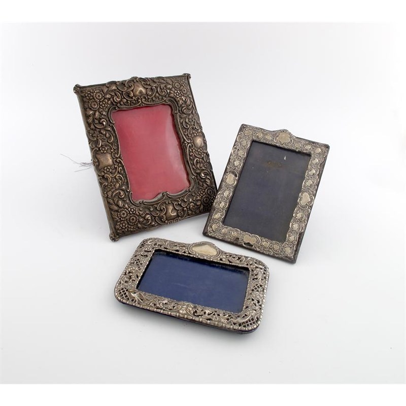 comprising: one of upright rectangular form, embossed decoration, plus two others, easel backs a.f. (3)