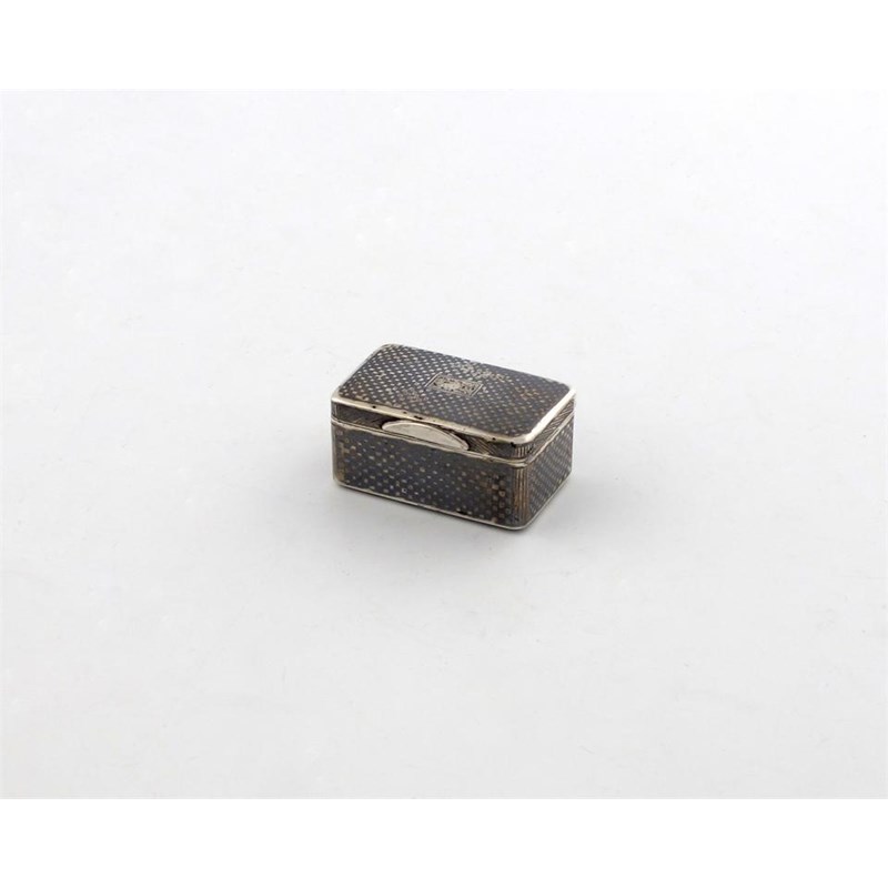 rectangular form, with chequer board decoration, gilded interior, length 4.1cm, approx. weight 1oz.
