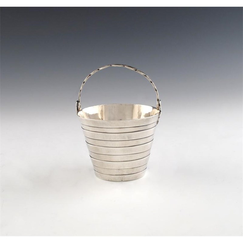 tapering circular form, banded decoration, pierced swing-handle, height 6.5cm, approx. weight 2.3oz.