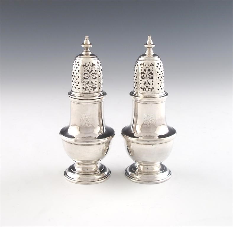 A pair of George II silver pepper pots,