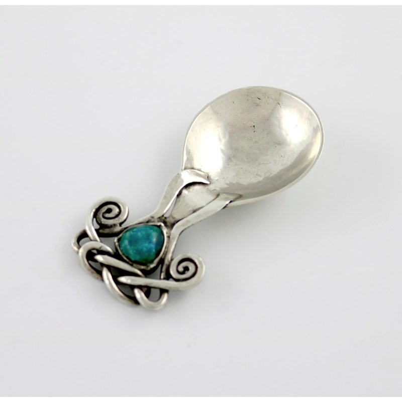 By Omar Ramsden and Alwyn Carr, an Arts and Crafts silver and enamel caddy spoon,