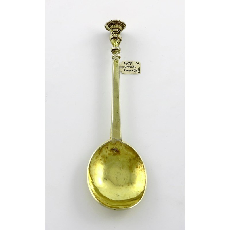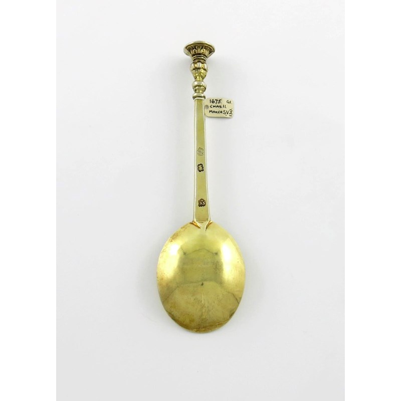 A Charles II heavy-gauge silver-gilt Seal-top spoon,