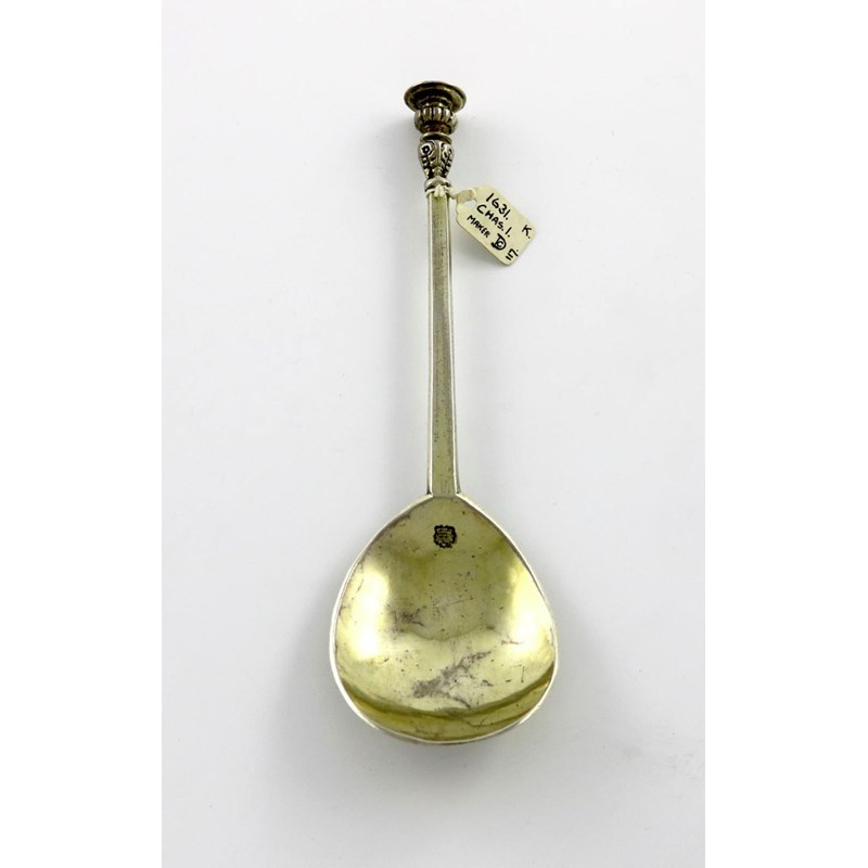 fig-shaped bowl, with later gilding, faceted tapering stem, the gilded seal-top finial prick-dot initialled 'P' over 'GM', length 17cm, approx. weight 1.9oz.