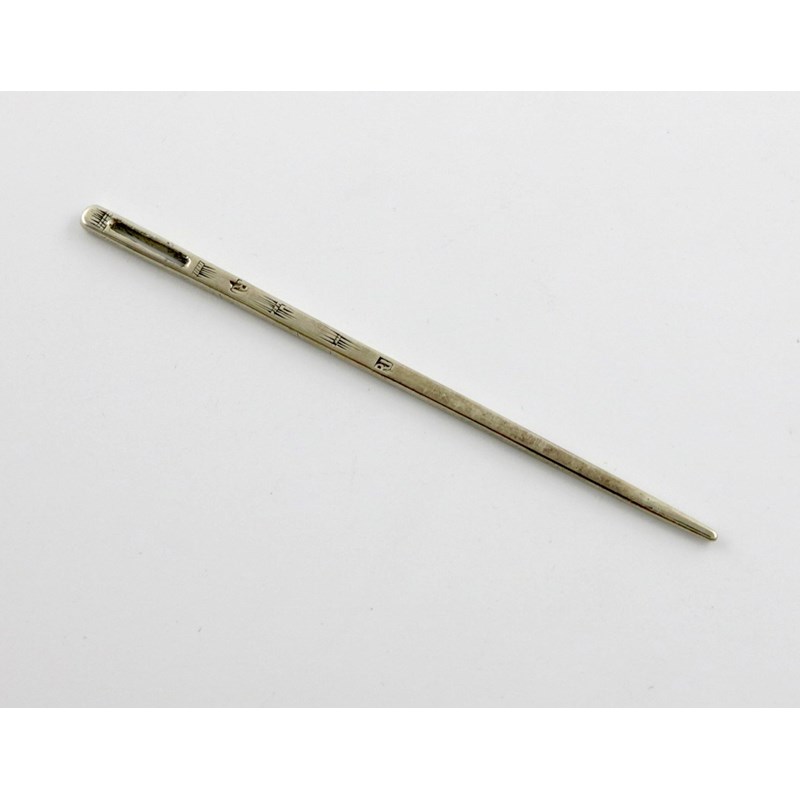 flattened tapering form, engraved decoration, with a slot, length 11cm, approx. weight 0.2oz.