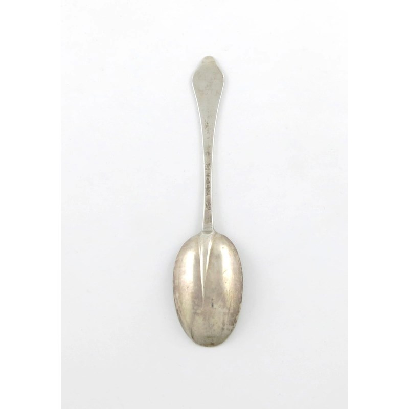 the oval bowl with a plain rat-tail, the reverse of the terminal with prick-dot initials 'F' over 'T.E', and dated '1712', length 19.2cm, approx. weight 1.1oz.
