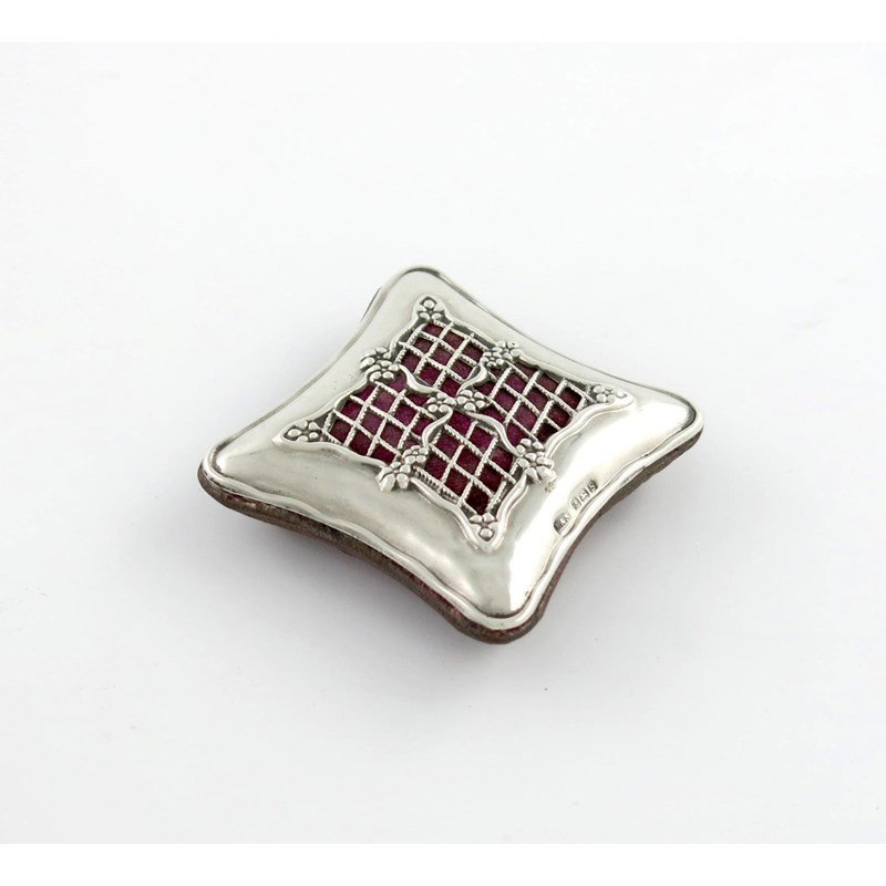 A novelty silver pin cushion