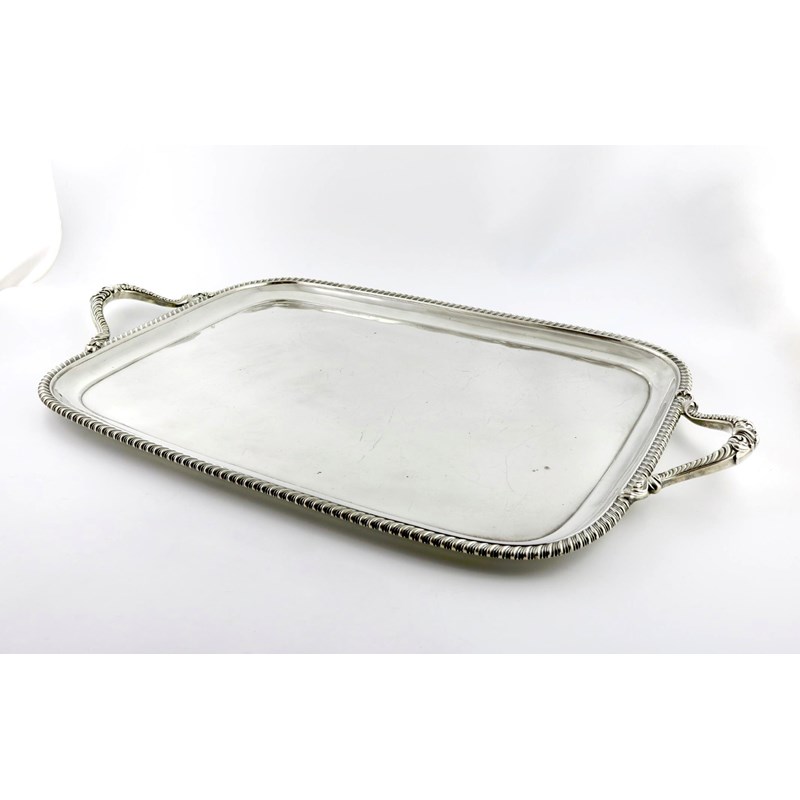 rectangular form, gadroon border, shell capped scroll handles, length handle to handle 76cm, approx. weight 132oz.