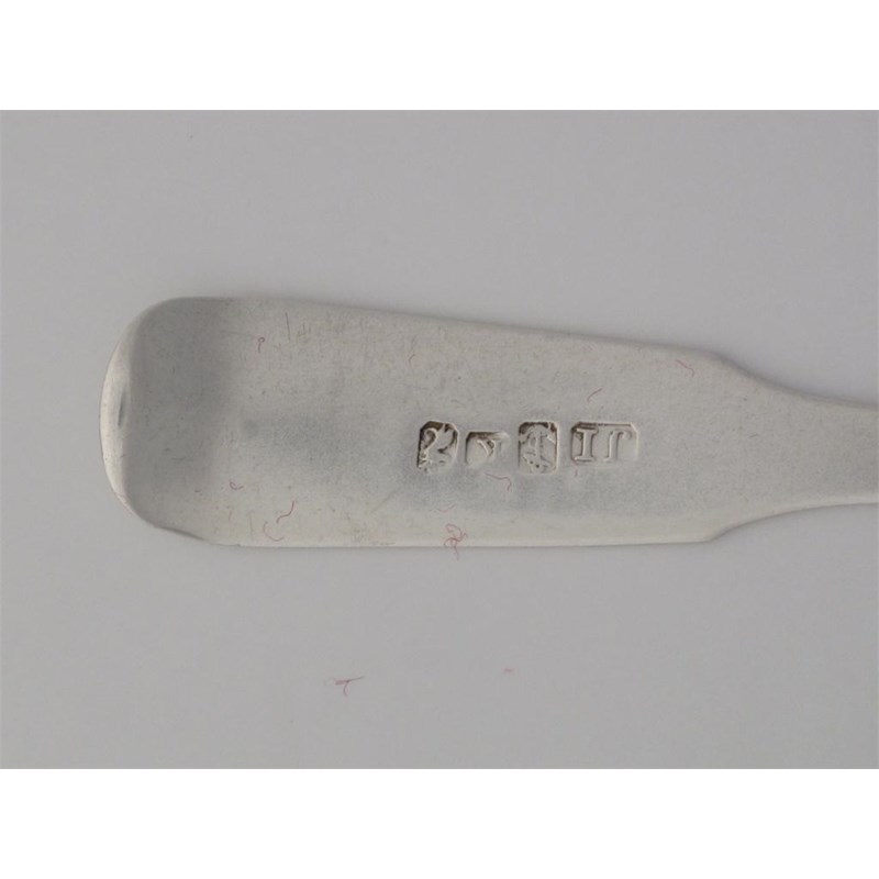 JAMES JOHNSTOEN: A rare fiddle teaspoon, script initials JJP, c.1860, 0.5oz. Overall slight wear. (71/2/10)