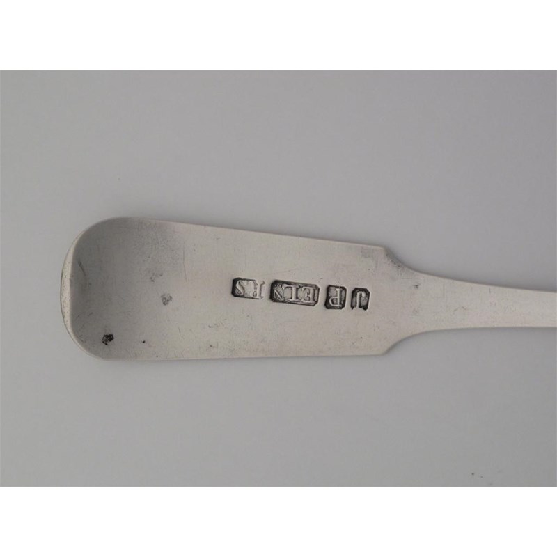 J.POZZI & R.STEWART: A fiddle toddy ladle, c.1840, 9oz. Erasure, but otherwise good. (71/2/10)