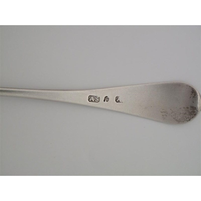 ALEXANDER STEWART: An Old English dessert spoon, script initial A, 1810-20, 1oz. A few minor blemishes in bowl, good condition. (71/2/10)