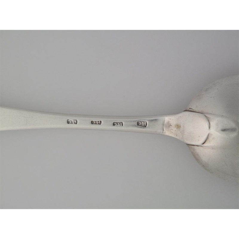 HUGH CLARK: A Hanoverian tablespoon, script initials SB and double drop, c.1775, 2oz. Polishing, later initials, solid through. (7/10)