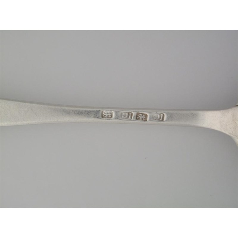 JAMES CORNFUTE: A Hanoverian tablespoon, script initial K, 1.75oz. Good marks, honest wear. (7/10)