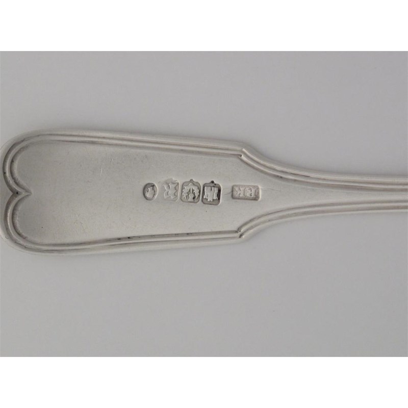 ROBERT KEAY (II): A fiddle and thread teaspoon (double struck), engraved crest and motto 'SPES ULTRA' with Edinburgh marks for 1848, 0.5oz. Very good. (8/10)