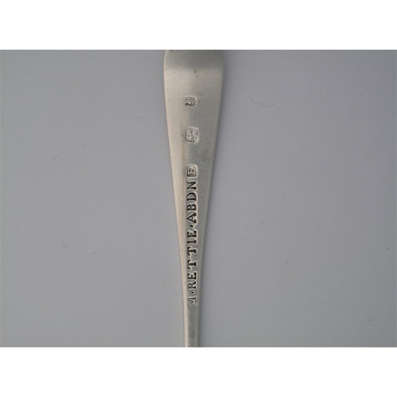 MIDDLETON RETTIE: (retailled by), maker JAMES ERSKINE, and Old English dessert spoon, script initials M over ER, c.1815, 0.75oz. A rare example of the two marks in overall nice condition. (7/10)