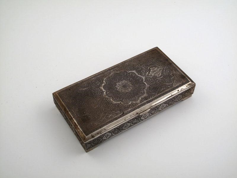 A Persian silver cigarette box,