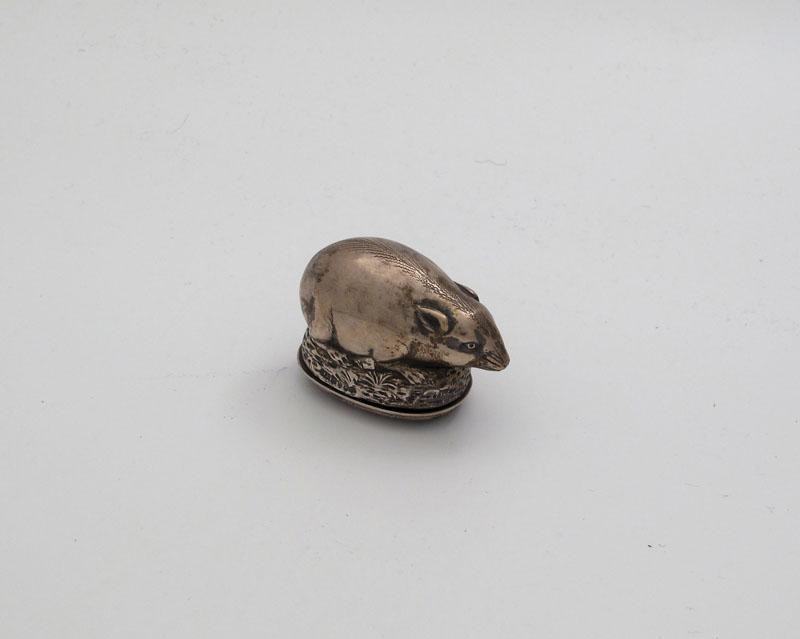 the hinged base with embossed foliate and figural decoration, gilt interior, length 6cm, approx. weight 1.5oz.