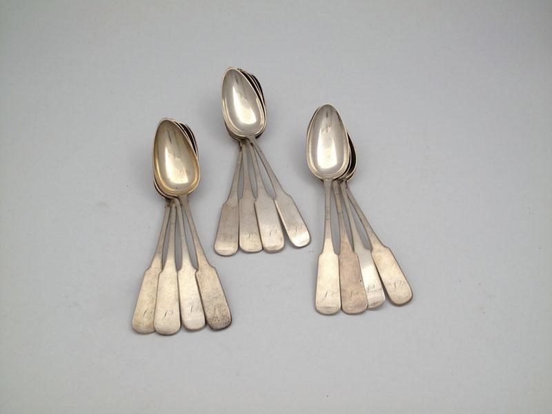A set of twelve early 19th century Scottish provincial silver Fiddle pattern tablespoons,
