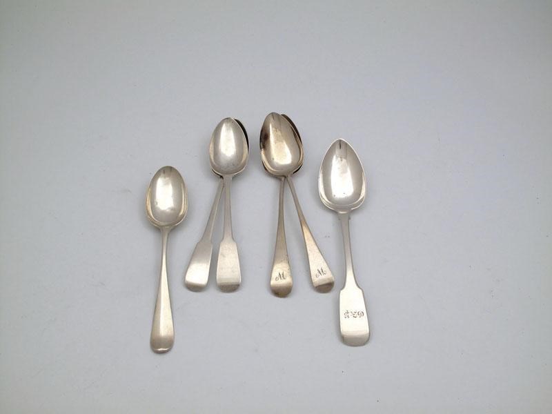 the reverse of the terminal crested, plus a pair of Scottish silver tablespoons and three Exeter tablespoons, approx. weight 11oz. (6)