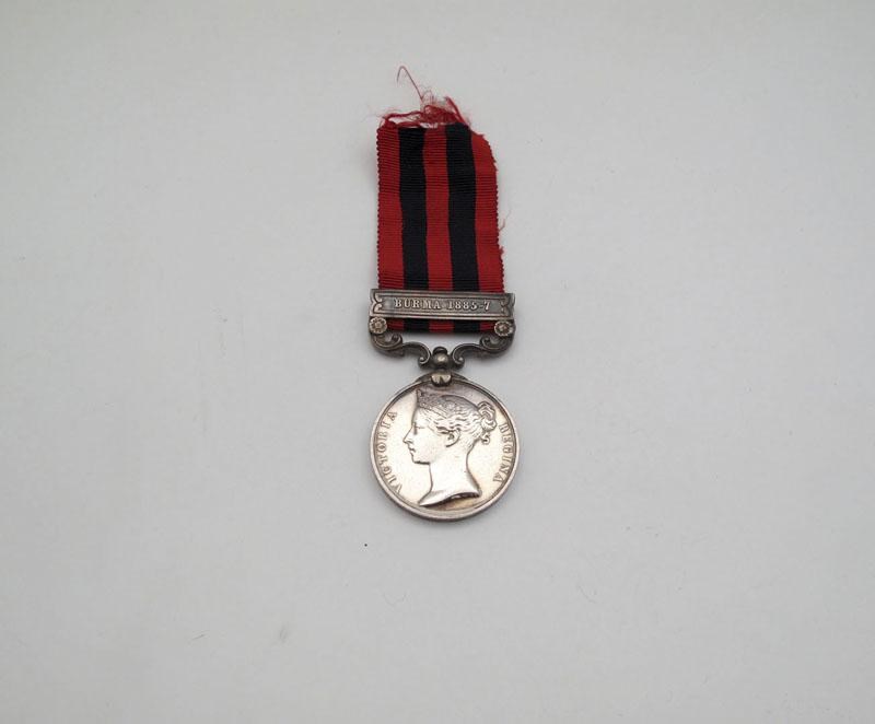 India General Service Medal, 1895-1902, clasp 'Burma 1885-7', engraved italics (2842 Pte. M. King 2nd Bn S. Wales Bord.). Cleaned, nearly very fine.