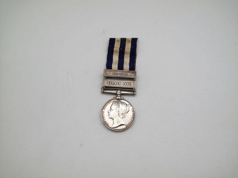 Egypt and Sudan Medal, 1882-89, 2 clasps, 'El-Teb' & 'Suakin 1884' (D. Thomas. Pte. R.M.  H.M.S. Carysfort).  Contact wear, fine.