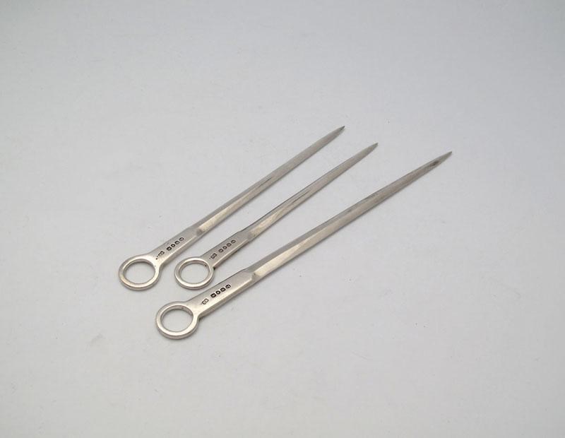 A graduated set of three William IV silver meat skewers