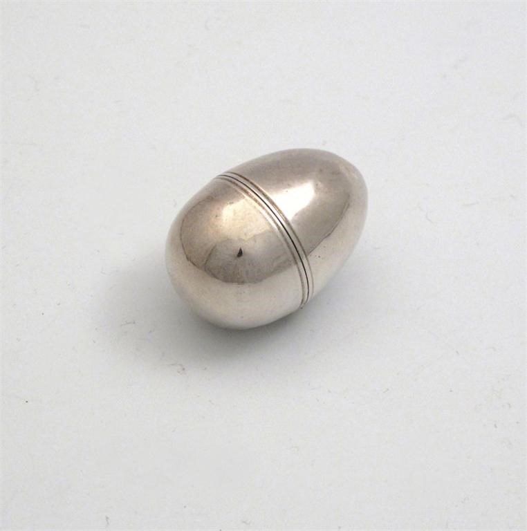 of plain egg form, the screw off cover opens to reveal the grille, length 3.8cm, approx. weight 0.4oz.