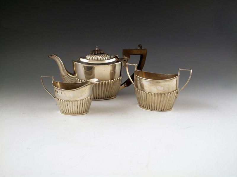 An Edwardian silver three-piece bachelor's silver tea set,
