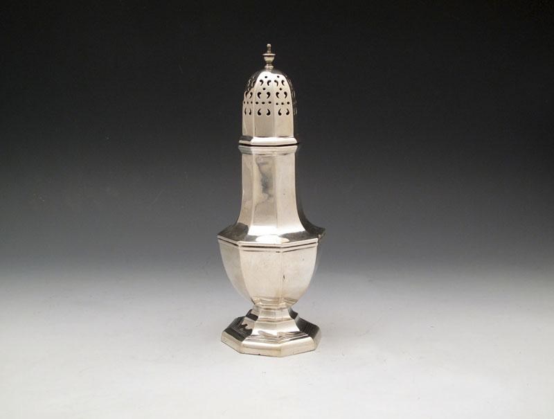 A silver sugar caster