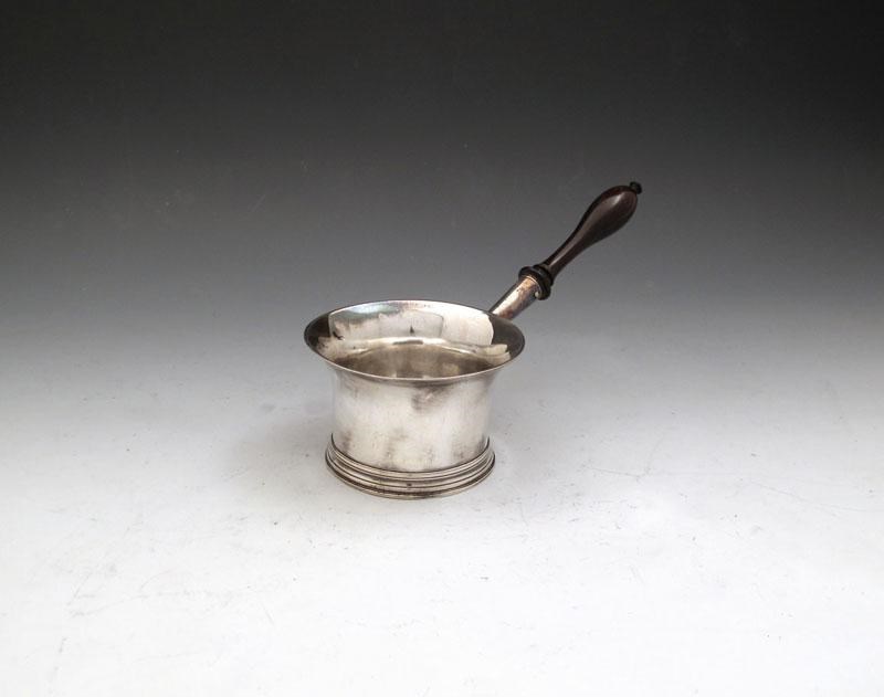 waisted circular form, wooden baluster handle, on a circular foot, length 20.5cm, approx. weight 4oz.