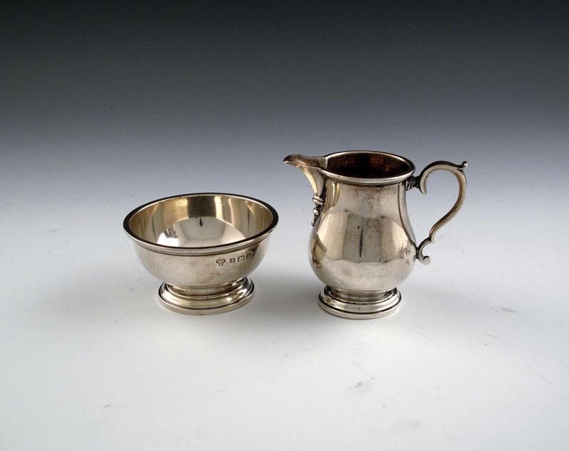 A silver cream jug and sugar bowl