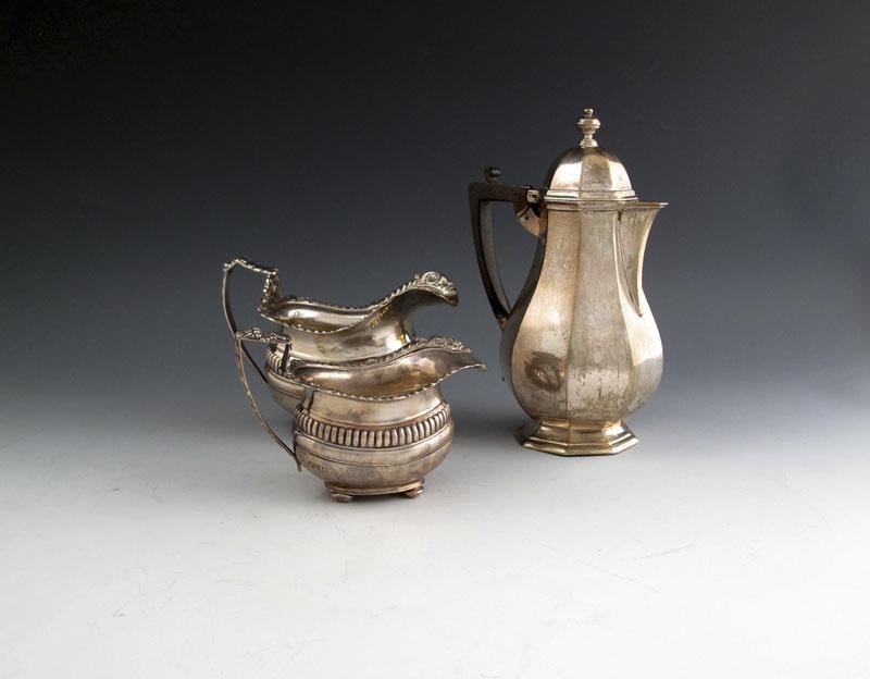 and a modern silver hot water pot, by Thomas Bradbury & Son, London 1912,