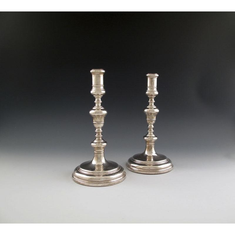 plain circular knopped baluster stems, on raised circular bases, wooden bases, height 24cm. (2)