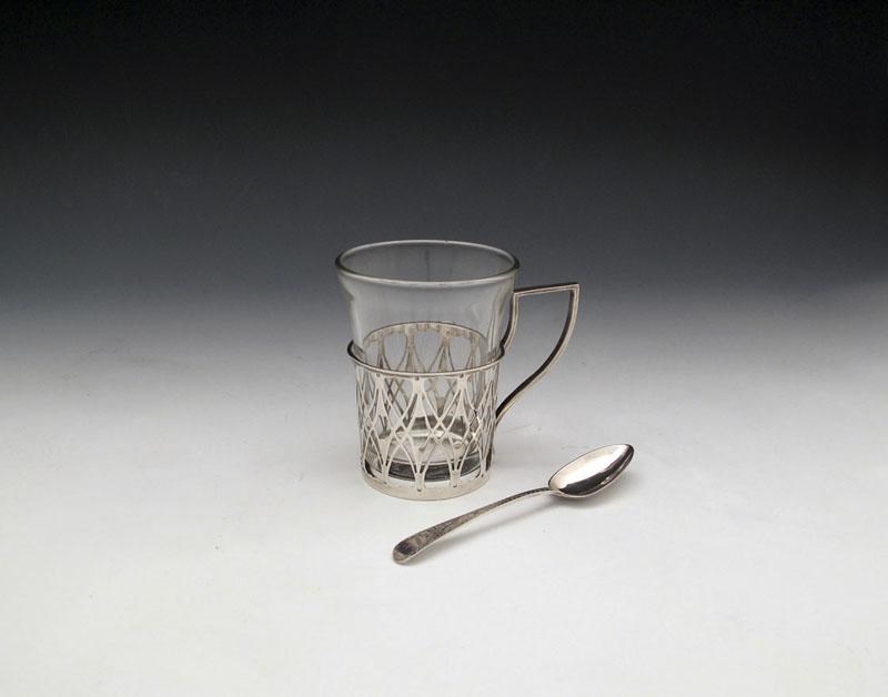 An Edwardian silver Art Nouveau tea glass holder,