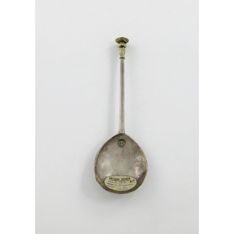 faceted tapering stem with a gilded finial, prick-dot initialled 'I.C' over 'B.P' '1642', with a trade label and BADA export label, length 16.8cm, approx. weight 1.2oz.