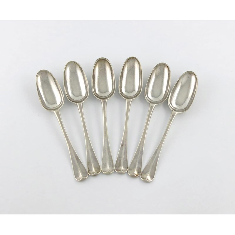 A set of six George I silver Hanoverian pattern tablespoons