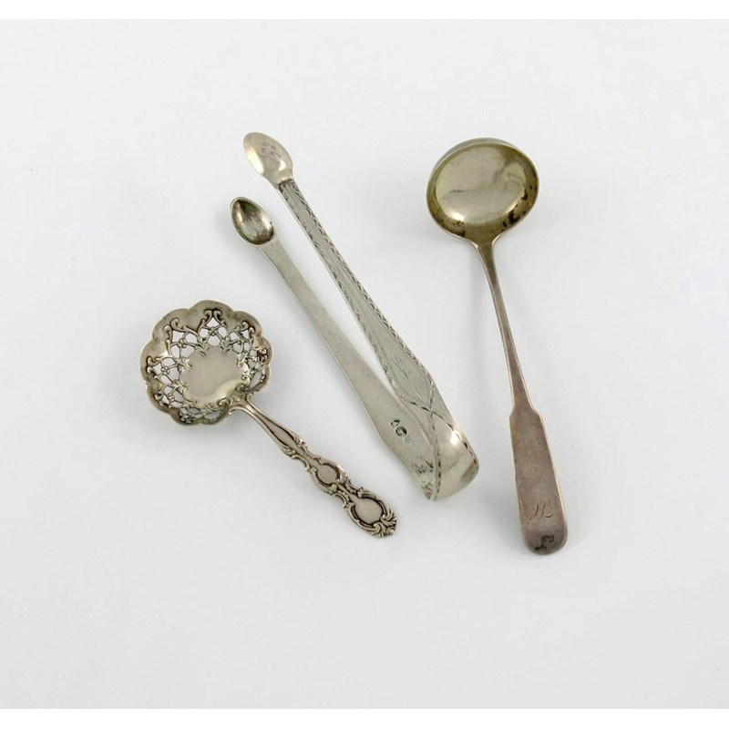 bright-cut decoration, plus a Victorian Scottish silver toddy ladle and an American silver sifting spoon, approx. weight 2.3oz. (3)